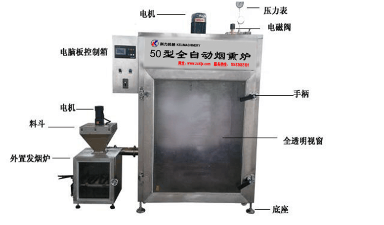 科力機械的小型煙熏爐是集蒸煮、烘干、煙熏、上色于一體的煙熏爐,經過煙熏后食品的顏色好看,還有一種煙熏后的香味,讓人感覺香而不膩,也能達到環保效果,代替了傳統的煙熏爐方法,節省了工人的勞動了,提高工作效率,更增強了食品的口感及彈性。