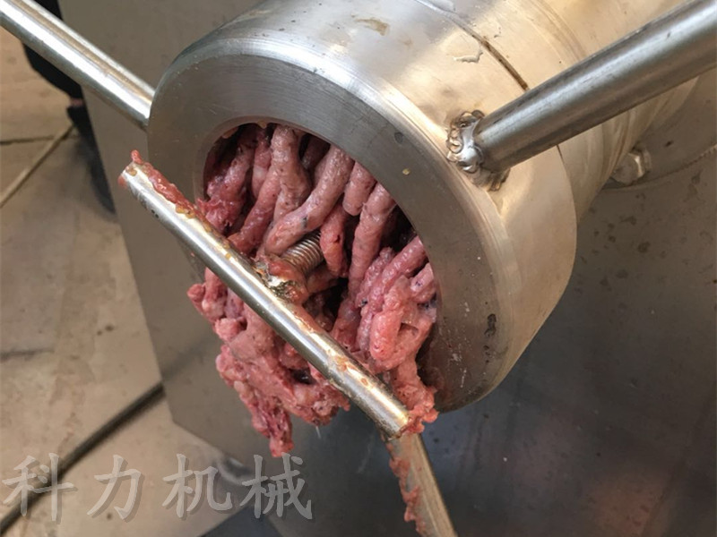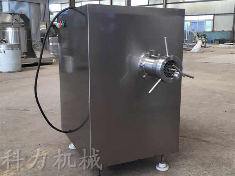 凍肉絞肉機是肉制品生產行業中通用性高、使用范圍廣的一種肉食加工設備。它是依靠螺桿將料斗箱中的原料肉推到預切板處,通過螺桿的旋轉擠壓使孔板與絞刀產生相對質運轉,從而將原料肉切成顆粒形狀,確保了肉餡的均勻性。通過孔板的不同組合可達到理想的要求的不同肉餡。