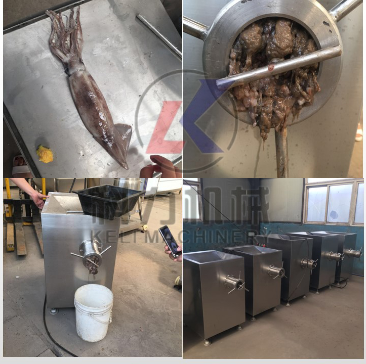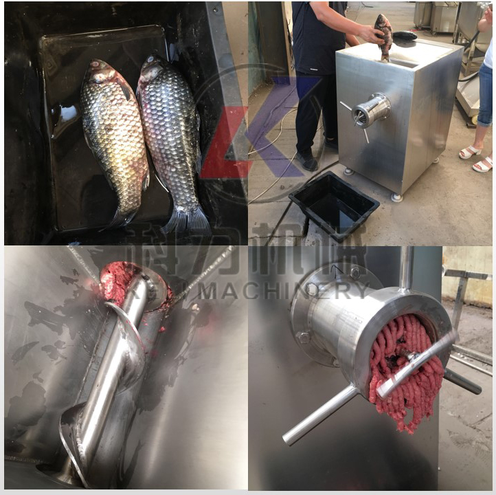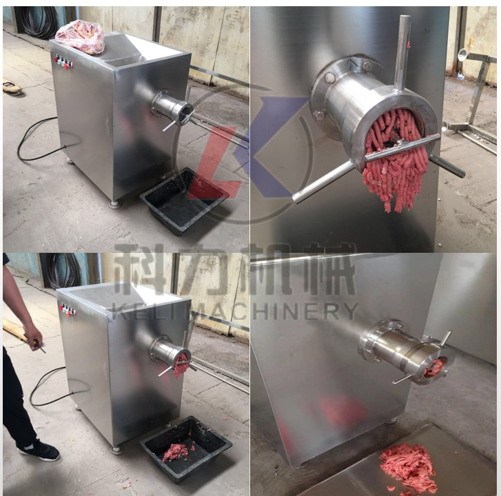科力牌凍肉絞肉機是肉制品生產行業中通用性高、使用范圍廣的一種肉食加工設備。它是依靠螺桿將料斗箱中的原料肉推到預切板處,通過螺桿的旋轉擠壓使孔板與絞刀產生相對質運轉,從而將原料肉切成顆粒形狀,確保了肉餡的均勻性。通過孔板的不同組合可達到理想的要求的不同肉餡。