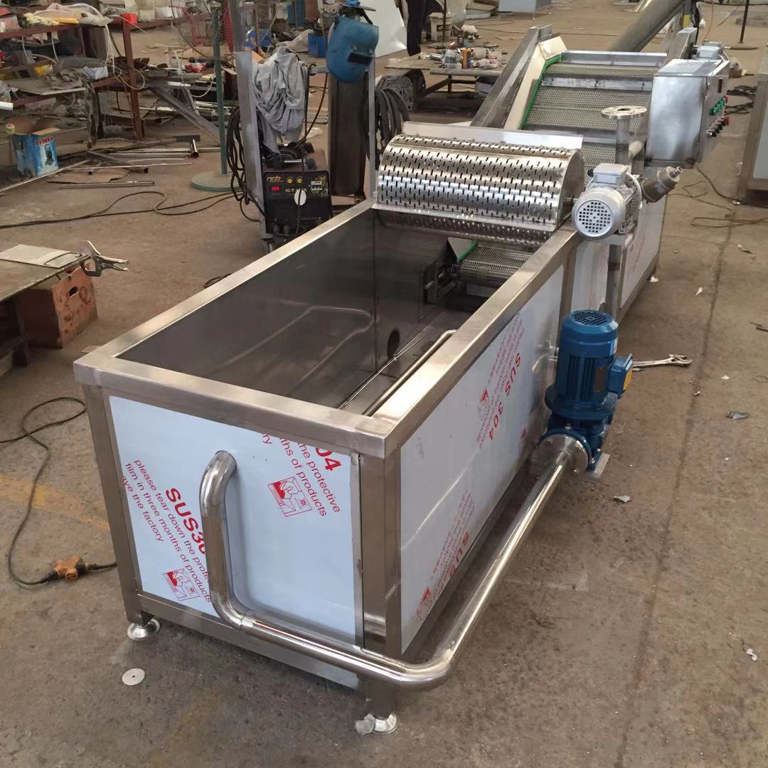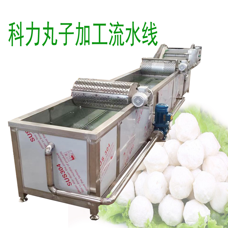 3、丸子冷卻槽 通過鏈條將丸子輸送到冷卻槽內的肉丸須在冷卻槽內迅速冷卻設冷卻槽內的水為開放型的,即進入冷水而溢出熱水,冷卻槽有進水口、出水過濾口,成熟后的肉丸在冷卻槽內冷卻槽內水溫始終在20~25度左右,丸子冷卻冷卻后可直接進入速凍車間掛冰冷凍或者風干油炸。